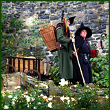 AngebotEin altertümlich gewandetes Kräuterweib mit einer Kiepe voller saisonaler